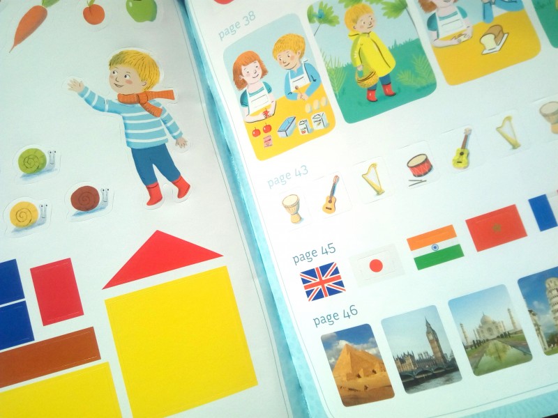 Dès que je l’ai feuilleté, je fus très contente, je savais que ce cahier correspondait totalement aux besoins de mon fils : Du graphisme guidé, des activités avec gommettes et beaucoup de découvertes du monde.