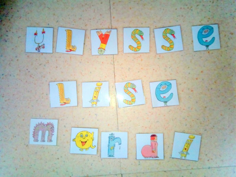 Ulysse prend souvent ses figurines et en 1 minutes les place de cette manière ( il reproduit le poster en fait) sans le savoir il reproduit l’alphabet, il le connaît aussi a l’oral.